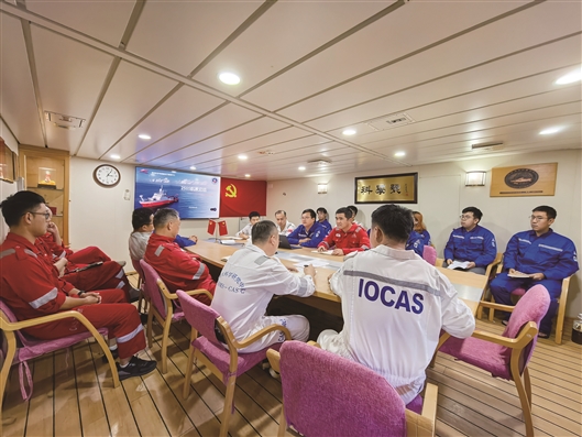 科考航程漫漫、环境复杂,既是对科学探索的极限挑战,也是对组织力、凝聚力的重大考验。“海上科考任务艰巨,党建工作绝不能缺位。”这是海洋所党委书记、副所长王辉反复强调的一句话。